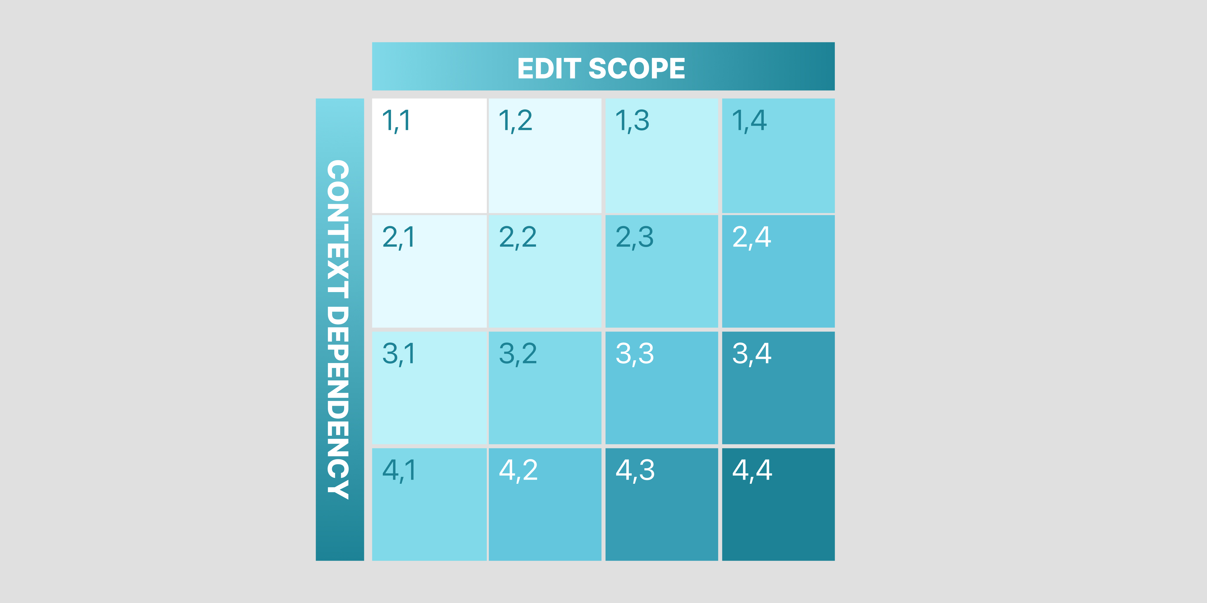 Modeled AI editing across scope and context as a structured matrix, making risks and dependencies explicit. Enabled the team to sequence development, avoid high-risk scenarios, and move forward independent of UI constraints.